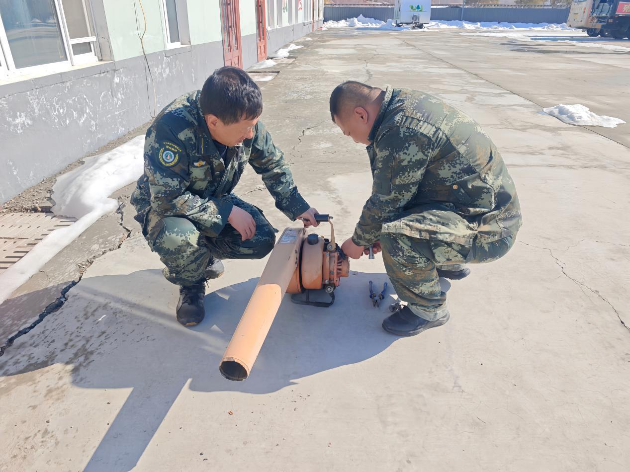 林场专业人员正在检修风力灭火机(李辉 摄)