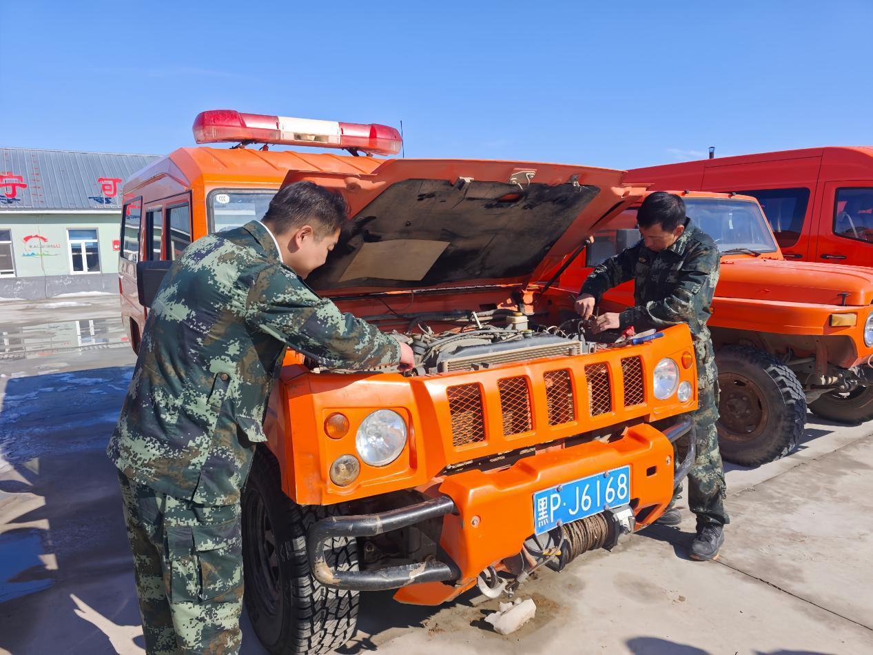 林场专业人员正在检修防火车辆(李辉 摄)