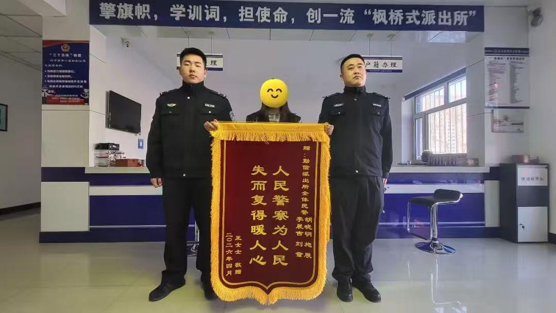 民警随后将手机当面交还给失主,失主看到失而复得的手机,且内部文件完好无损,激动地向民警连连道谢。为感谢民警高效处置、为民解忧,失主特意制作锦旗,专程送到勤俭派出所,表达对民警的感激之情。