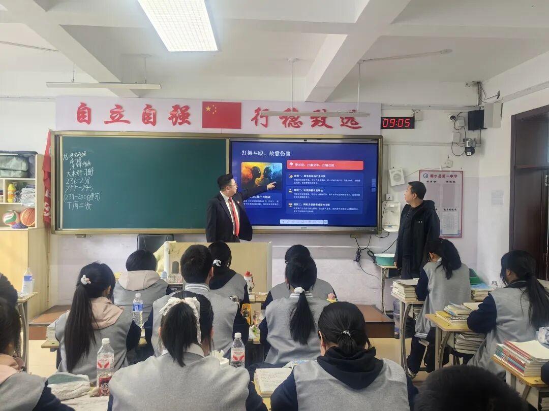 黑龙江经济网讯(董慧莹 赵世奇)为进一步延伸司法服务职能,从源头预防青少年违法犯罪,近日,明水县人民法院法官、明水一中法治副校长赵世奇走进明水县第一中学校园,为全校学生开展了一场形式多样、内容丰富的法治教育系列活动。活动采取“集中广播宣讲+进班级互动讲解”的分层授课模式,旨在增强学生法治观念和自我保护意识,有效预防校园欺凌与青少年违法犯罪,助力营造安全、文明、和谐的校园育人环境。明水一中副校长陈朋主持本次活动。