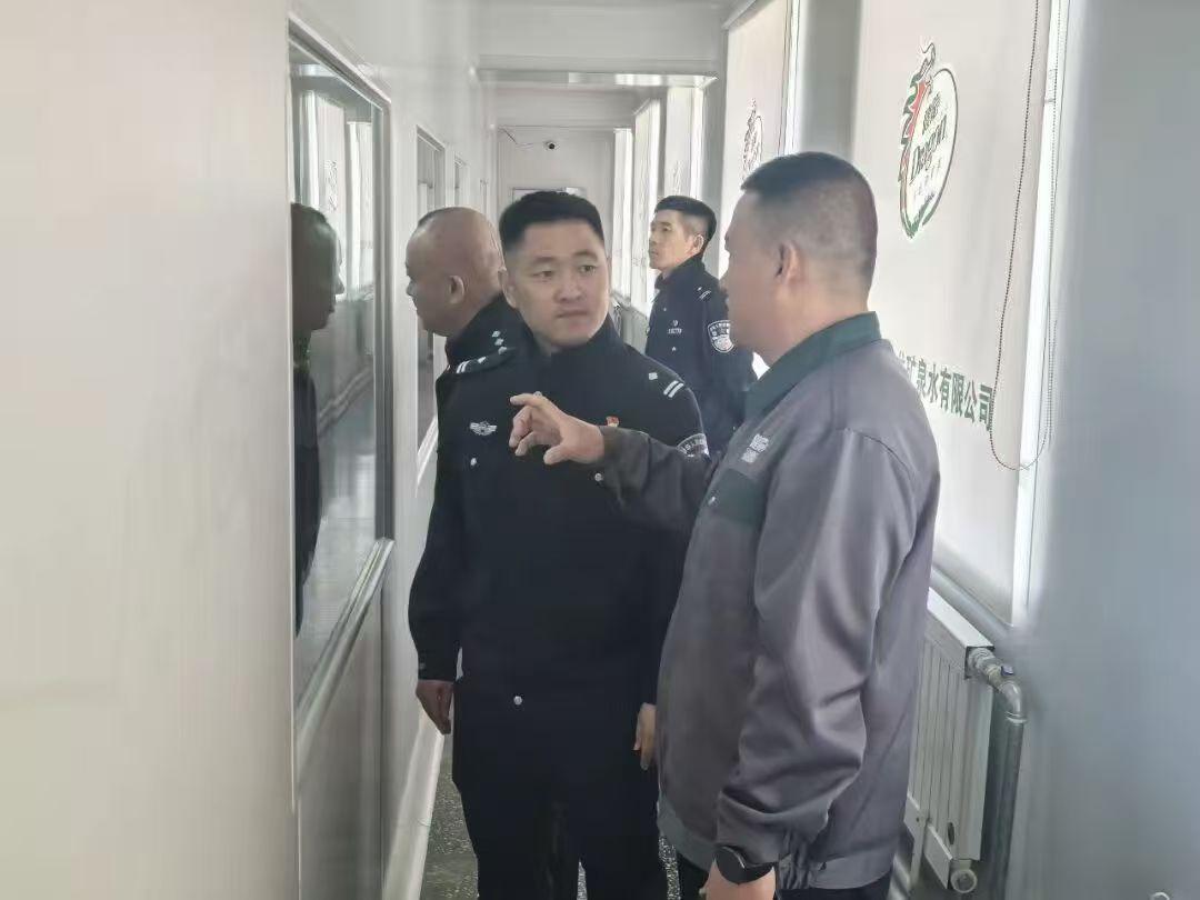 赵宇一行前往健龙矿泉水生产企业,实地查看企业生产经营、内部安保、消防安全等工作落实情况,详细了解企业日常运营中面临的治安隐患、矛盾纠纷、安全管理等实际问题。药泉派出所所长立足岗位职责,围绕企业周边治安防控、涉企警情处置、安全生产监管、反诈宣传、员工法治教育等工作,与企业负责人进行深入沟通交流,现场解答企业提出的各类政务咨询、回应问题诉求。