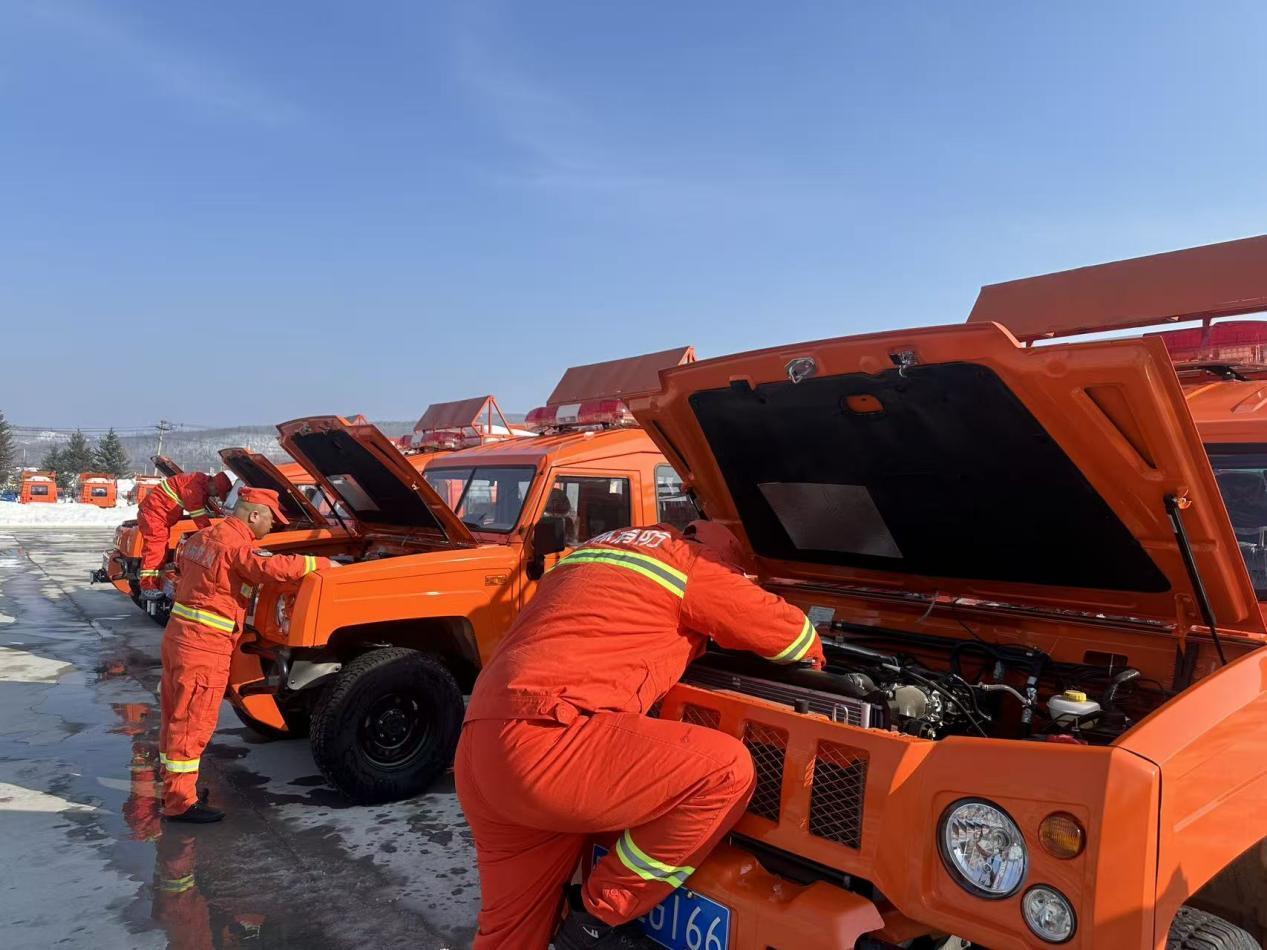 营区内,队员们对风力灭火机、油锯、消防水泵等扑火装备进行全面检修保养,逐台调试、逐项检验,确保性能稳定、随时可用;运兵车、机具运输车整装待发,扑火物资分类规整、储备充足。